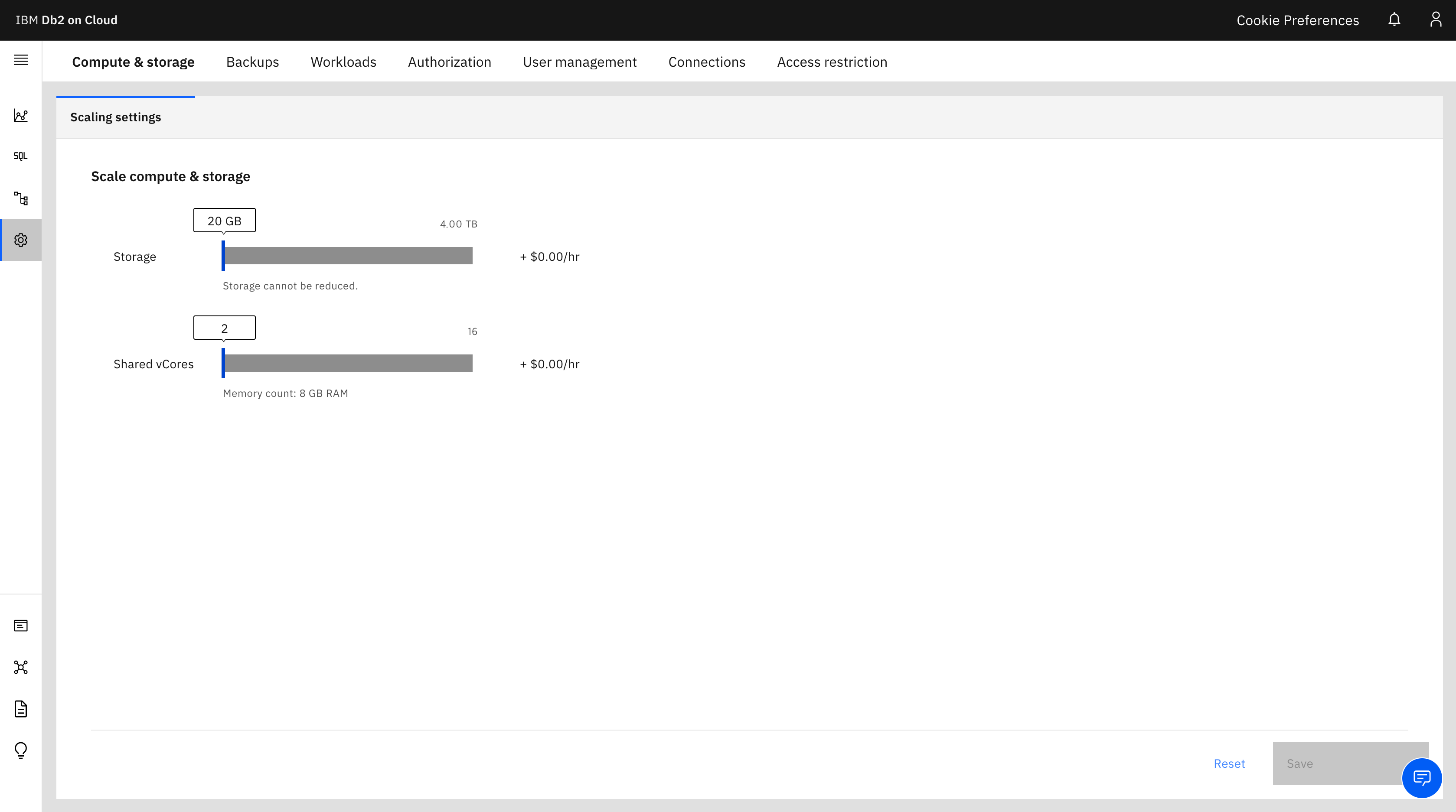 DB2 관리화면입니다. 스토리지설정, 백업, 워크로드, 사용자관리, 접속등등을 관리할 수 있습니다.