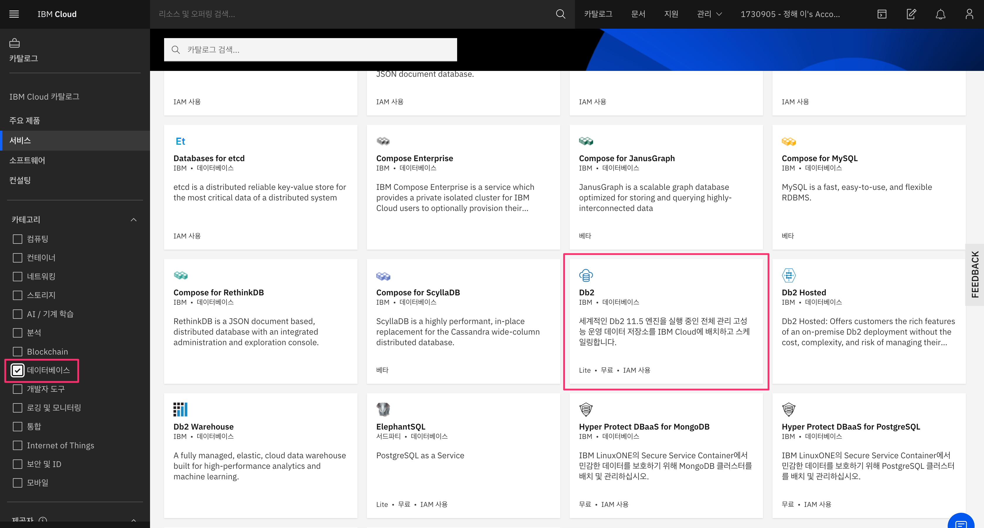 ▶︎ DB2 서비스 선택