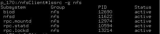 lssrc -g nfs 를 입력하여 NFS 데몬이 떠 있는지 확인하고 active 되어 있지 않으면
