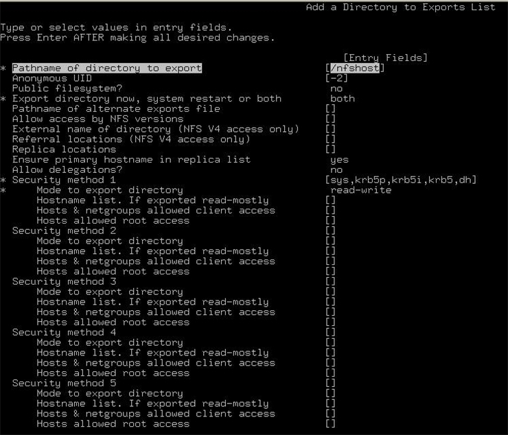 smit nfs -> Network File System (NFS) -> Configure NFS on This System -> Start NFS