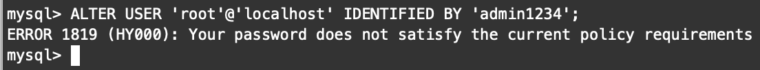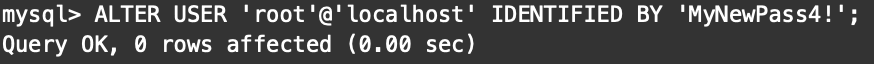 mysql> ALTER USER 'root'@'localhost' IDENTIFIED BY 'MyNewPass4!';