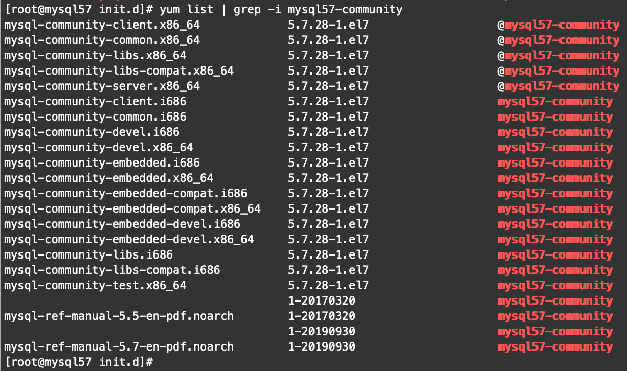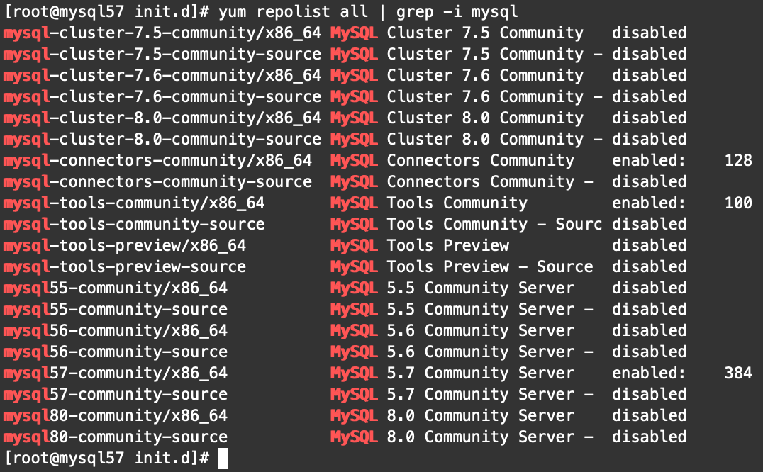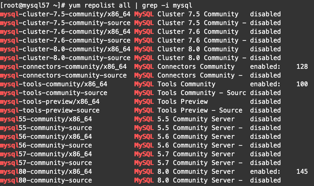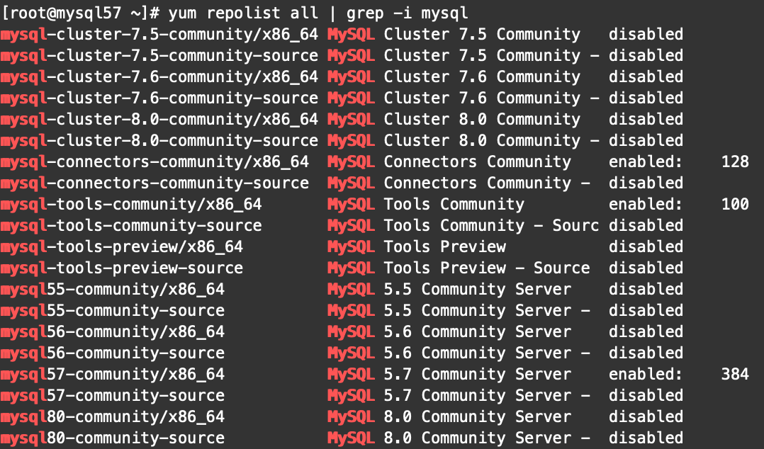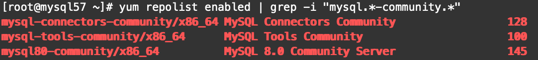 shell> yum repolist enabled | grep -i "mysql.*-community.*"