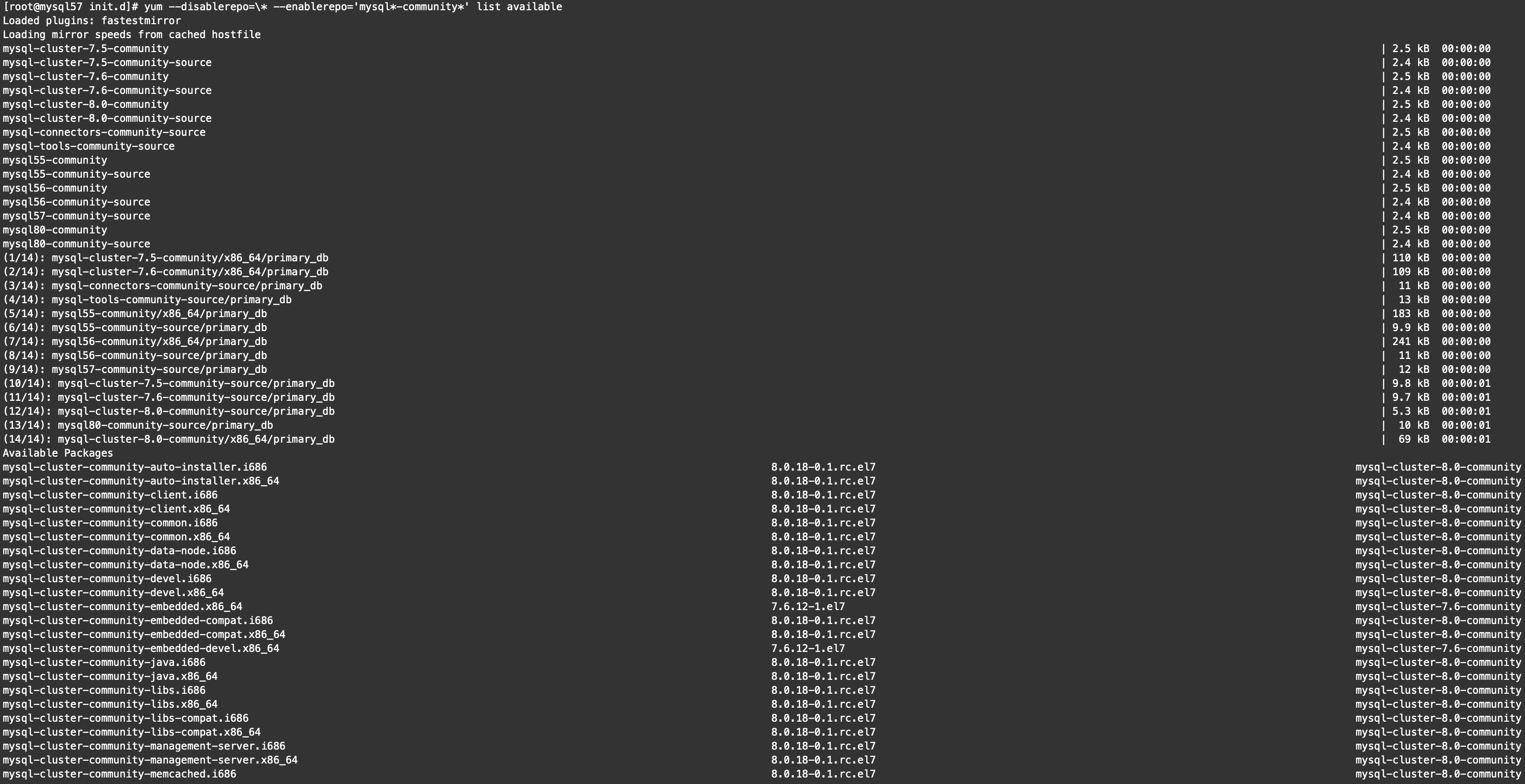 shell> sudo yum --disablerepo=\* --enablerepo='mysql*-community*' list available