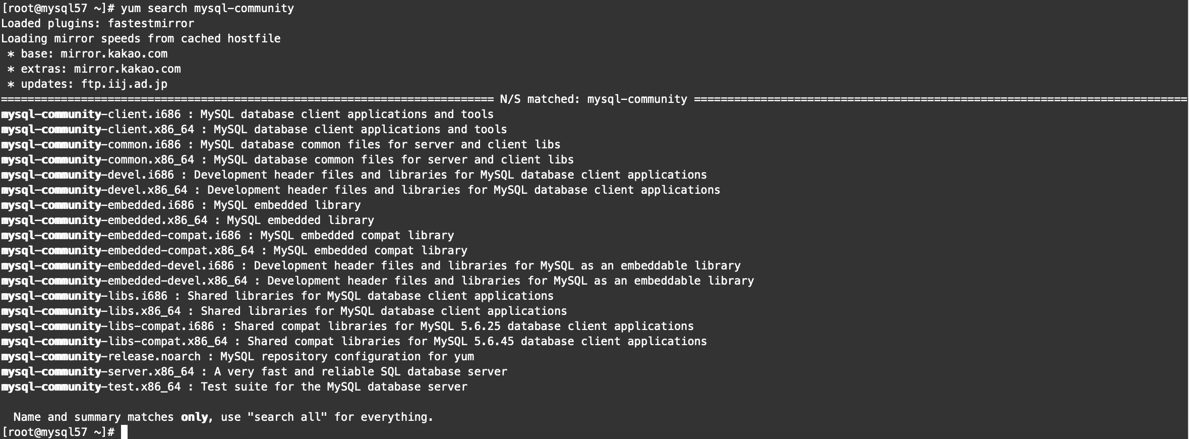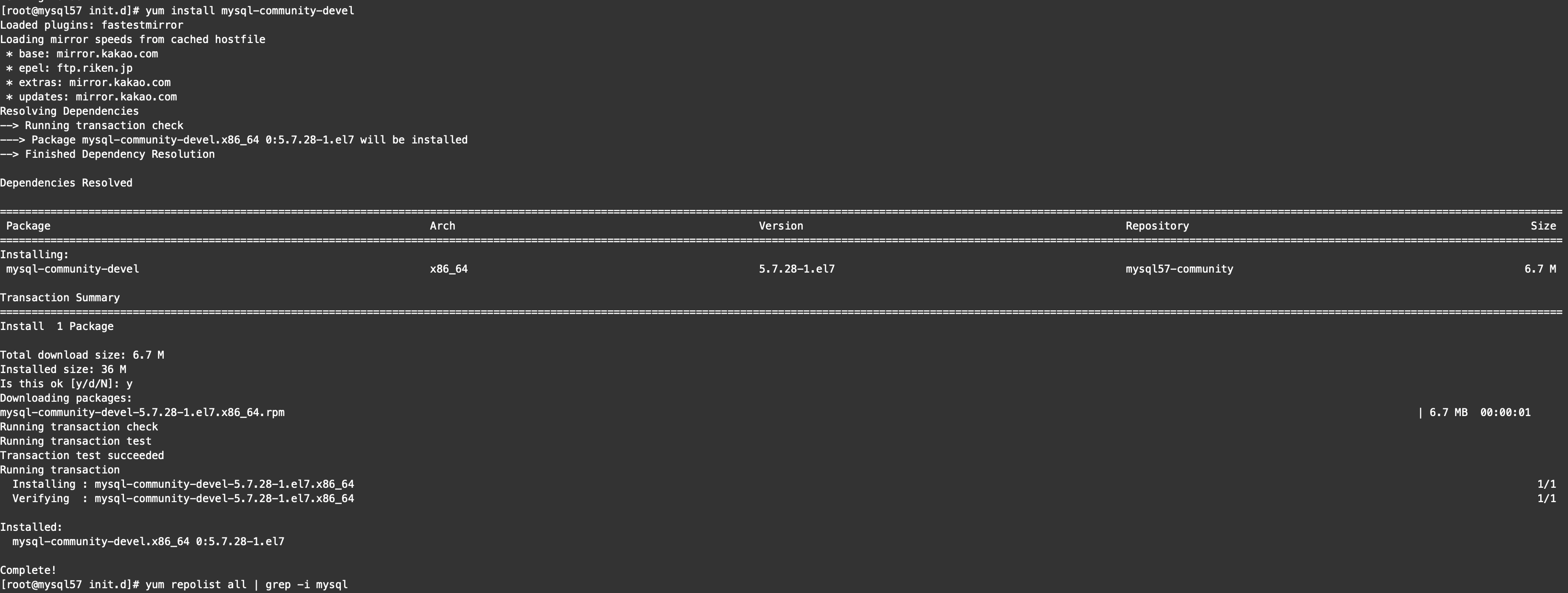 MYSQL서버 말고도 client같은 터미널 접속 패키지와 jdbc connectot, odbc같은 개발환경 패키지도 다운로드 받아야 합니다. 그러나 이 패키지들은 또다른 서브 repository에 존재합니다. 다음과 같은 yum 명령을 수행합니다.
