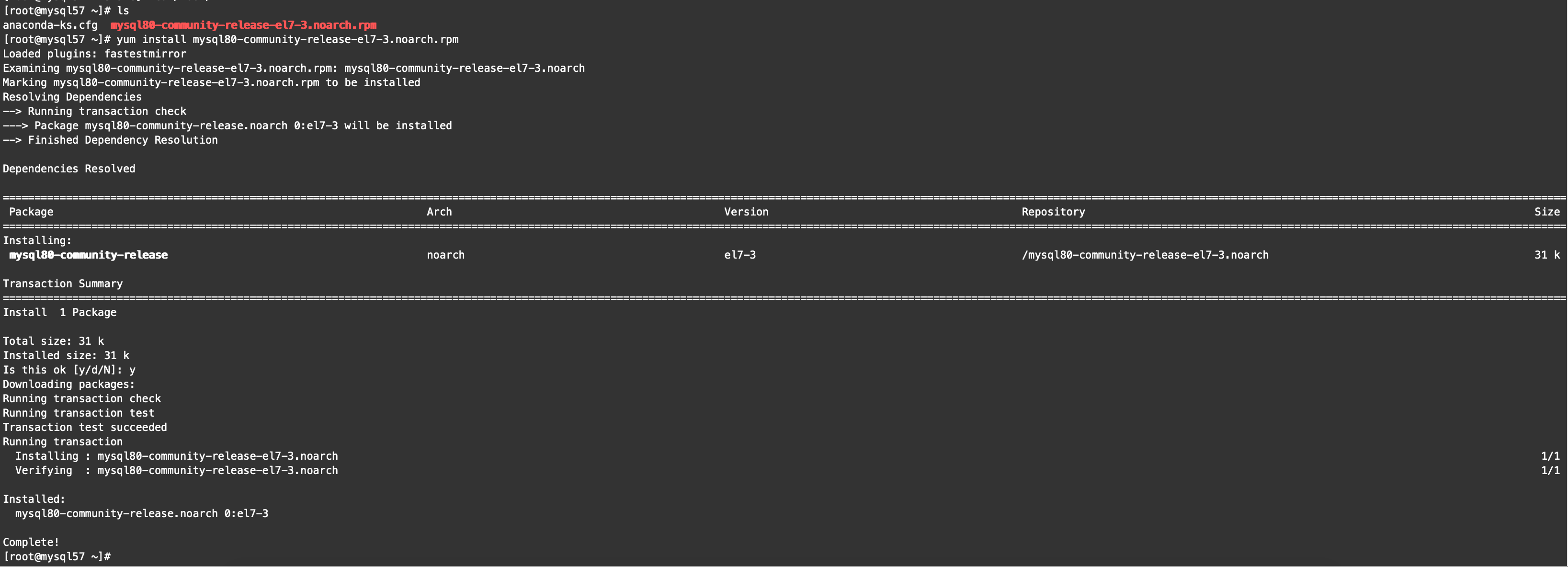 rpm -Uvh mysql80-community-release-el7-3.noarch.rpm