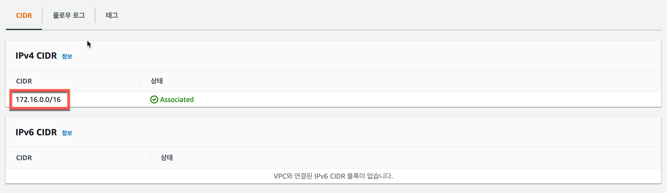 위에서 만든 VPC를 선택합니다. 아래 CIDR을 확인합니다.