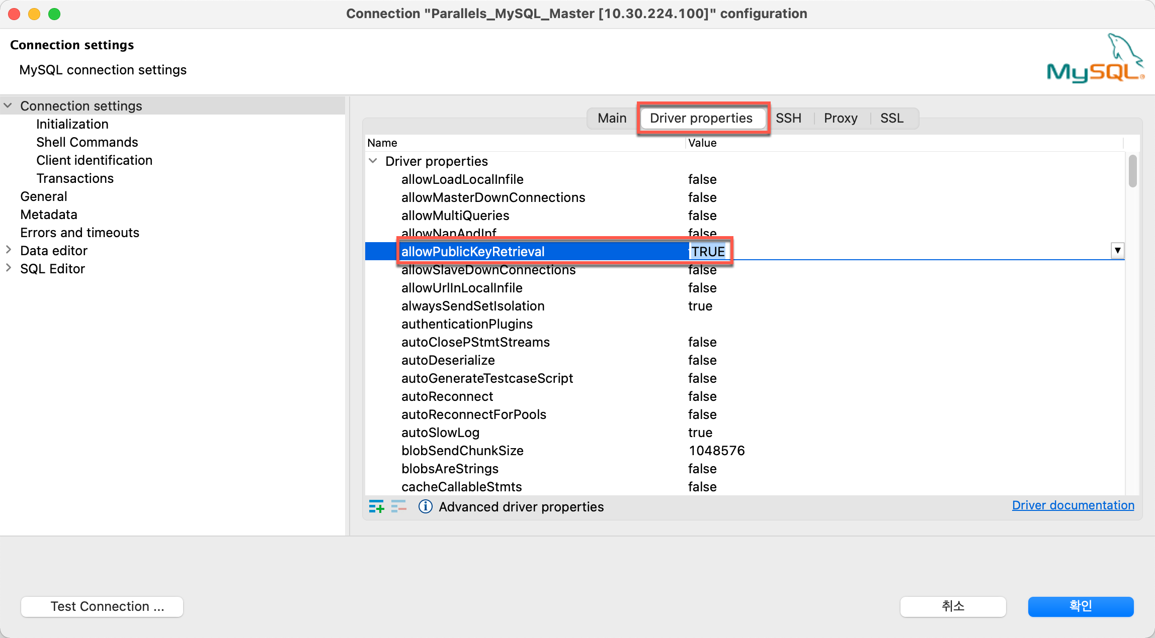 대부분 DB Tool에서 위와 같은 옵션을 지원합니다. 위의 옵션을 TRUE로 변경합니다. 그럼 접속이 가능하게 됩니다.
