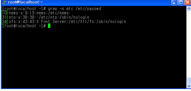 아래 그림에서 /etc/passwd 파일 내용 중에 etc라는 문자열이 들어가 있는 라인을 찾는데, -c 옵션을 사용하여