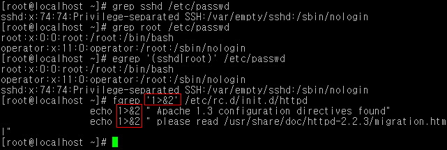 다음 그림처럼 fgrep명령어는 '>&'기호를 그대로 인식하여 출력하기 때문에 처리속도가 빠르다.